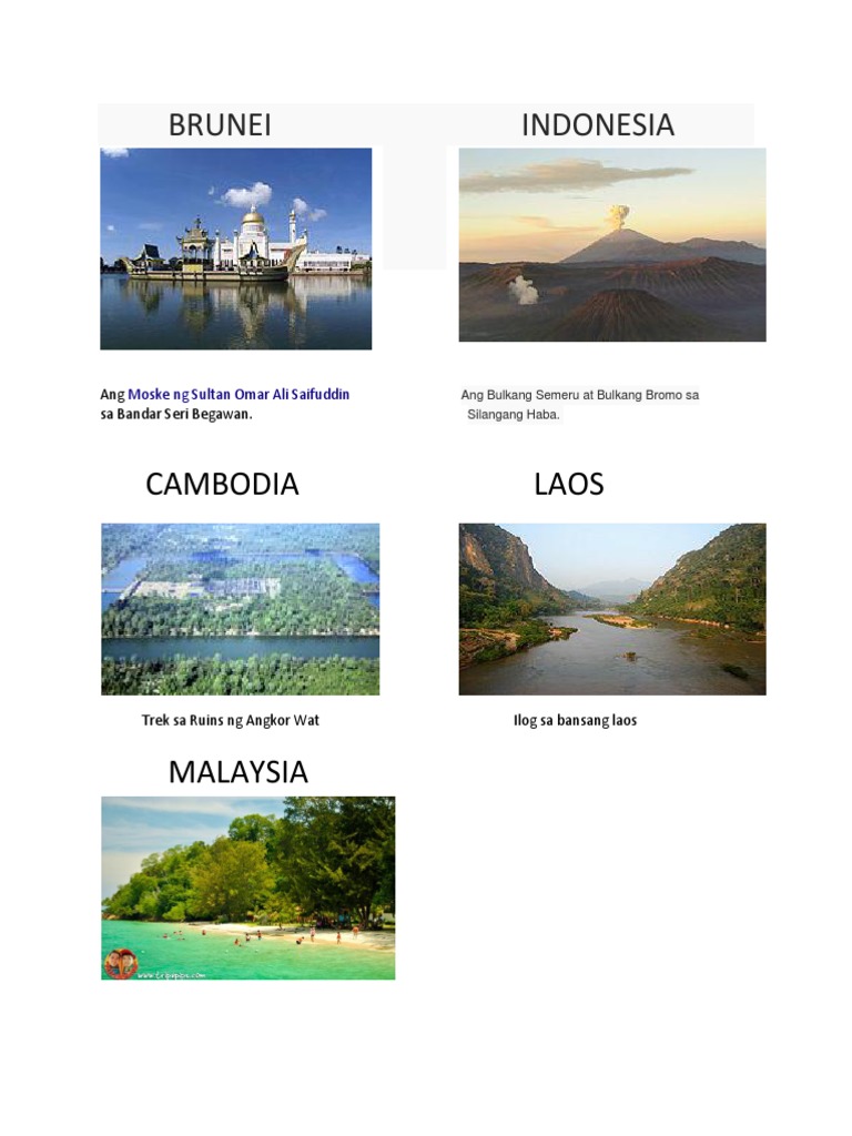 Maliban sa Pilipinas ang iba pang bansang kabilang sa rehiyong ito ay ang mga bansang Brunei Cambodia Indonesia Laos Malaysia Myanmar Burma Singapore Thailand Vietnam at. Liyu Lake Carp Lake Taiwan 3. BANSA NG SILANGANG ASYA Sa paksang ito alamin natin ang ibat ibang mga bansa ng Silangang Asya at ang paglalarawan ng bawat isa.