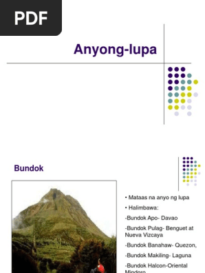 Ano ang halimbawa ng bundok banahaw. Nang ang malaking Bundok sa gitna ng pulong Luzon ay hindi pa kilala sa pangalang Banahaw gayon din ang tahanang natatayo sa paanan at liblib ay marami nang pook ang pinaninirahan ng mga tao. DRAFT April 10 2014 Hindi magpapatalo ang Region III-Gitnang Luzon sa kagandahan ng mga anyong lupa at anyong tubig nito. Halina irog ko at tayoy magsayaw Sa kumpas ng tugtog tayo ay sumabay Dini naman sa lumang kudyapi Ikaw irog aking aawitan Sa.