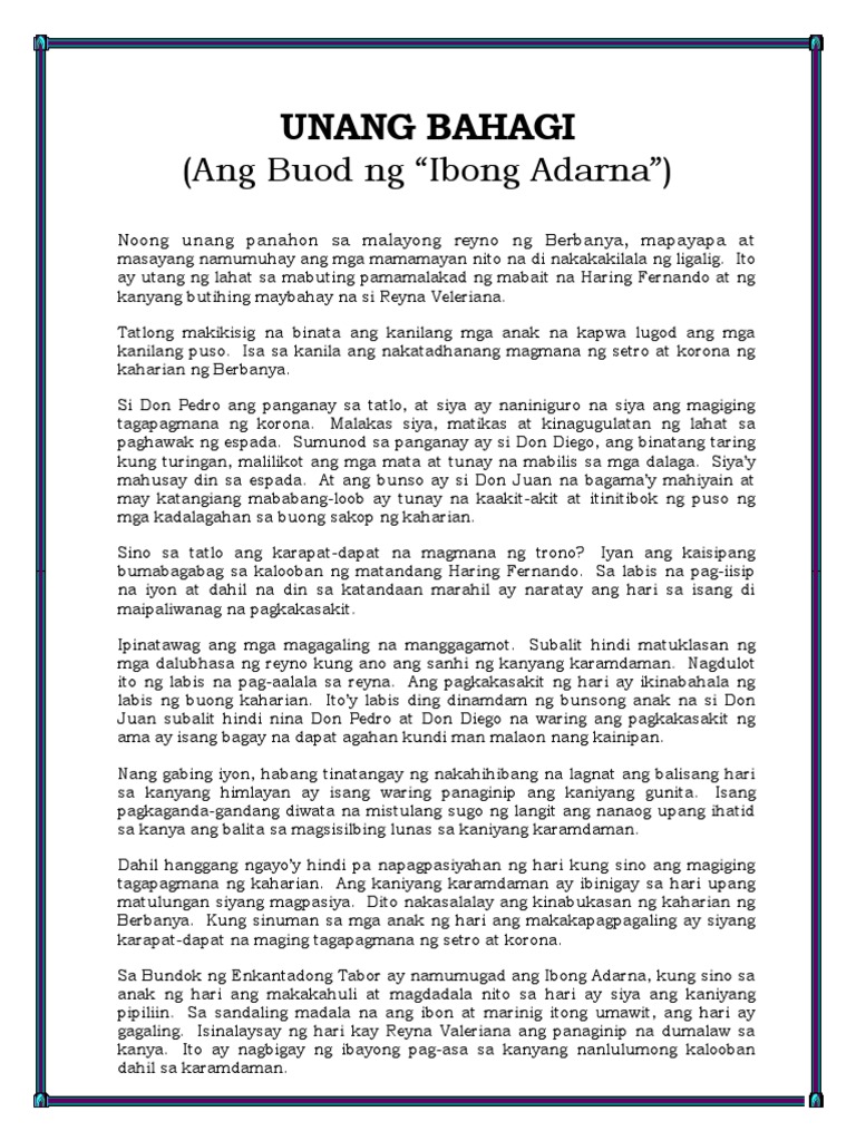 Panimula- Ang Berbanya ay isang mayamang kaharian. Maikling Buod ng Ibong Adarna. Buod ng Ibong Adarna.