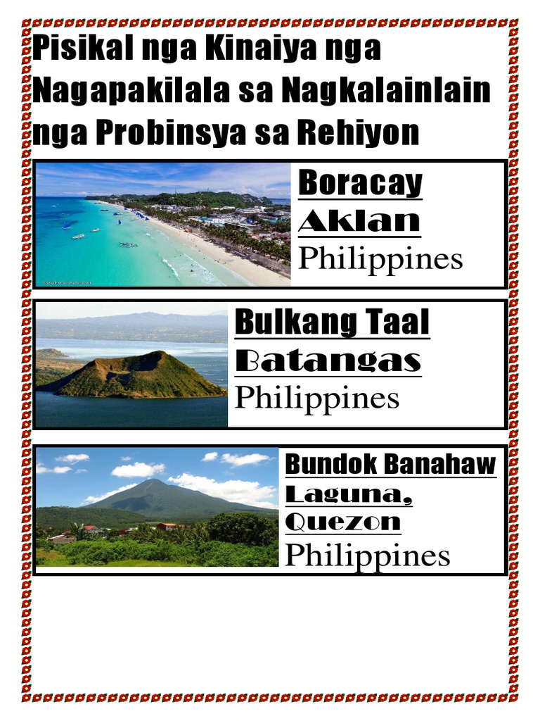 Pisikal Nga Kinaiya Nga Nagapakilala Sa Nagkalainlain Nga Probinsya Sa Rehiyon Pdf