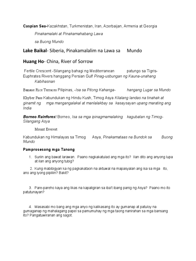 Katangiang Pisikal Ng Asya Pdf